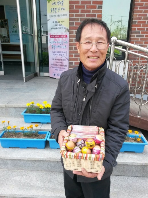 분들에게 부활계란을 전하며