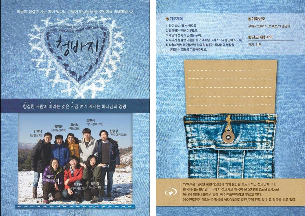 10월부터 공동체로 합숙하며 훈련받았고 지난 12월 30일 부터 2개월 동안 인천과 경기에서 전도여행중이라고 하더군요